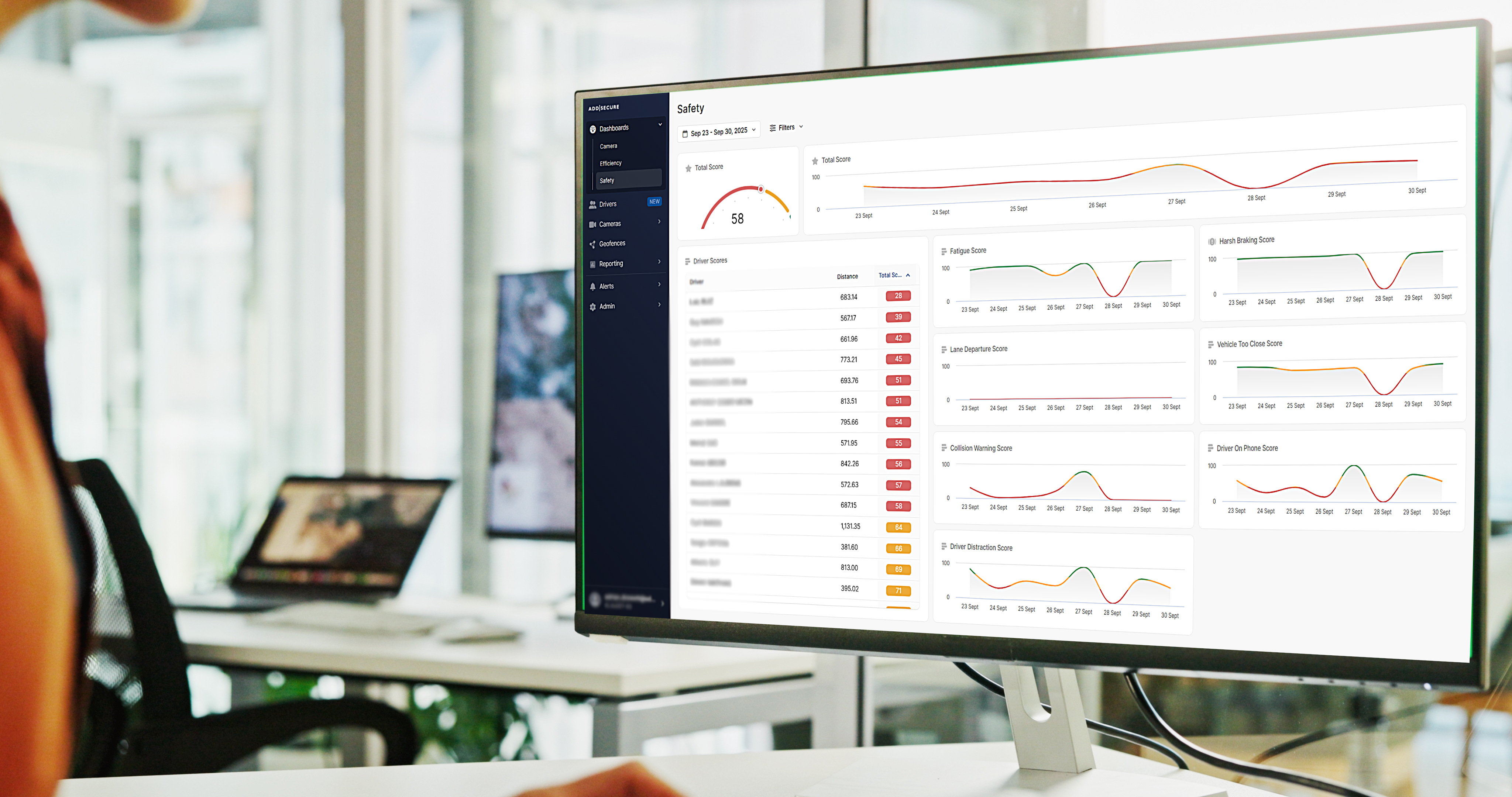 Usługa Safety Score obejmuje pulpity nawigacyjne w portalu internetowym AddSecure, oferujące firmie przegląd wyników floty, a także indywidualne oceny każdego kierowcy, które są na bieżąco aktualizowane. Dynamiczne wykresy umożliwiają śledzenie trendów (wzrostu lub spadku poziomu bezpieczeństwa) oraz porównywanie ocen według okresów lub pomiędzy kierowcami. Safety Score oferuje konfigurowalne ustawienia, pobieranie raportów w formacie PDF lub Excel oraz generuje powiadomienia w czasie rzeczywistym (e-mail/wiadomości). Safety Score jest dostępny w pakietach rozwiązań RoadView Flex i RoadView Plus.
